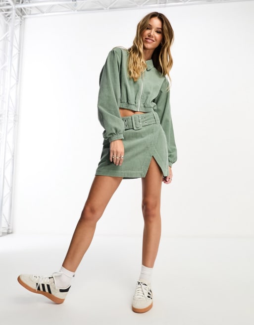 ASOS DESIGN cord wrap mini skirt in sage (part of a set)