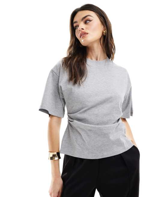 ASOS DESIGN corset waist t-shirt in grey marl