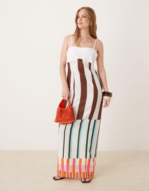 ASOS DESIGN cotton-linen blend colourblock cami maxi dress in mixed stripe