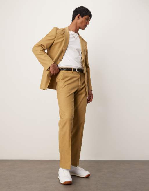 ASOS DESIGN cotton linen-blend straight leg suit pants in camel twill