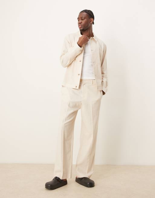ASOS DESIGN cotton smart wide leg pants in stone with elasticated waist (part of a set)