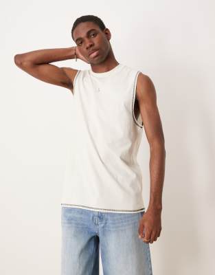 ASOS DESIGN crew neck boxy tank in cream