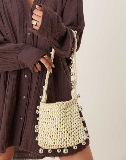 ASOS DESIGN crochet bag with beaded strap in sage