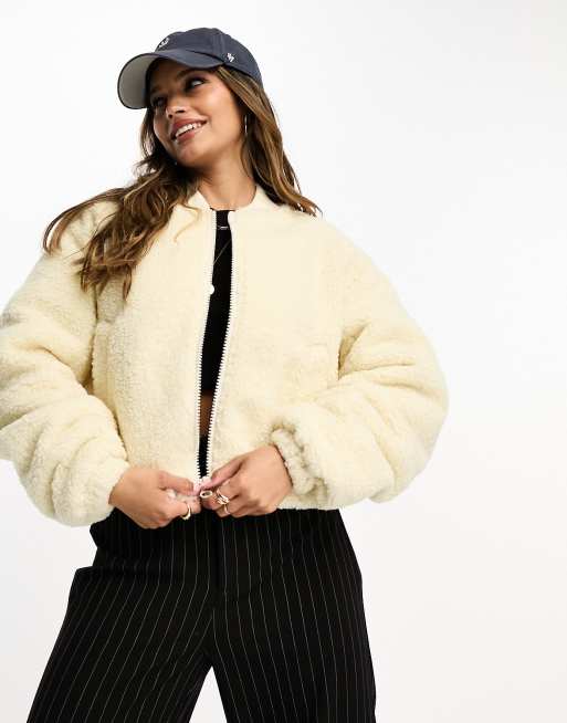 ASOS DESIGN cropped bomber fleece bomber jacket in ecru