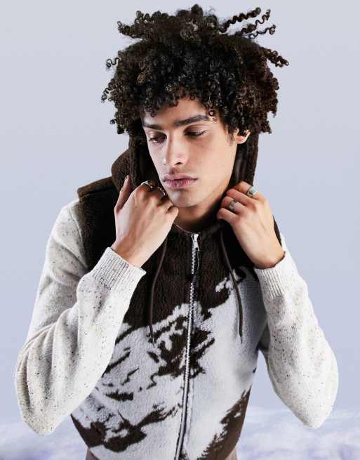 ASOS DESIGN cropped borg vest with print in brown