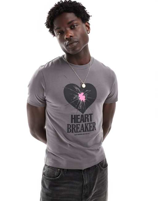 ASOS DESIGN cropped muscle t-shirt with heartbreaker print in charcoal