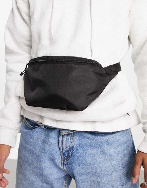 ASOS DESIGN cross-body bum bag in black nylon with contrast pullers