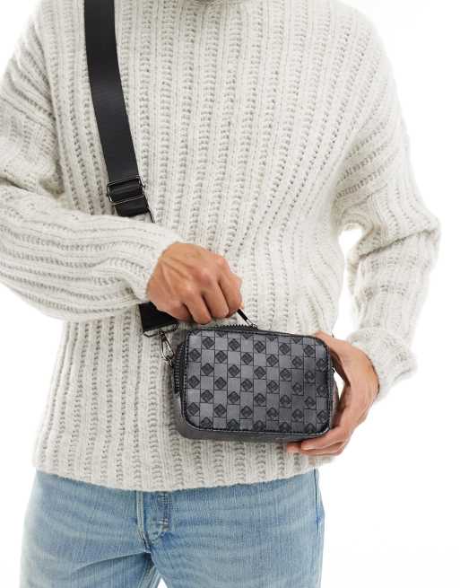 ASOS DESIGN cross body camera bag with checkerboard emboss in black