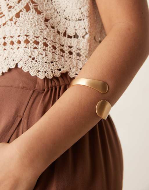 ASOS DESIGN cuff bracelet with wrap around brushed detail in gold tone