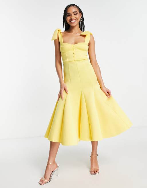 ASOS DESIGN cupped tie shoulder midi prom dress in lemon