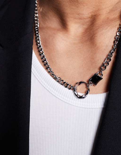 ASOS DESIGN curb chain black pendant necklace in silver tone