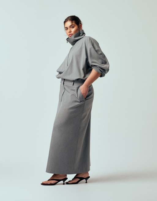 ASOS DESIGN Curve tailored pencil maxi skirt in grey (part of a set)