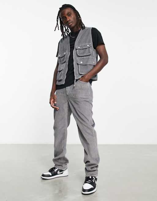 ASOS DESIGN dad jeans in dark grey corduroy (part of a set)