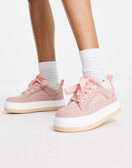 ASOS DESIGN Dakota skater sneakers with oversized laces in blush