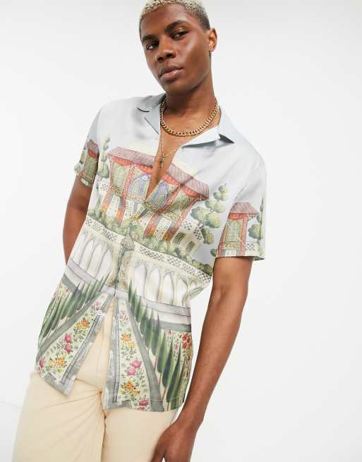 ASOS DESIGN deep revere shirt with palace scene print in satin