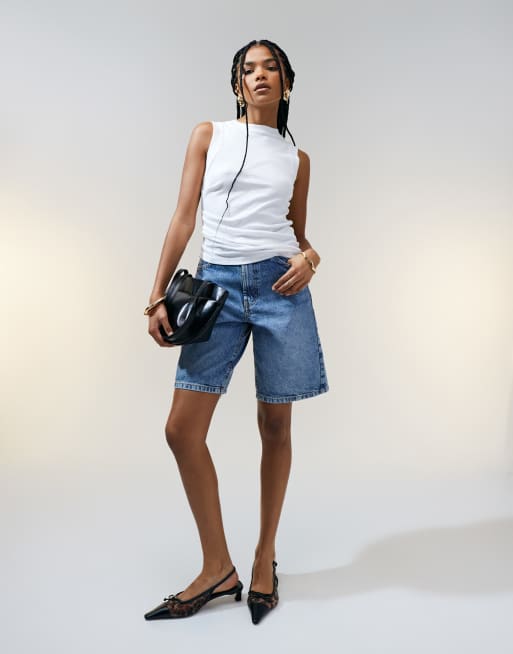 ASOS DESIGN denim bermuda shorts in midwash blue