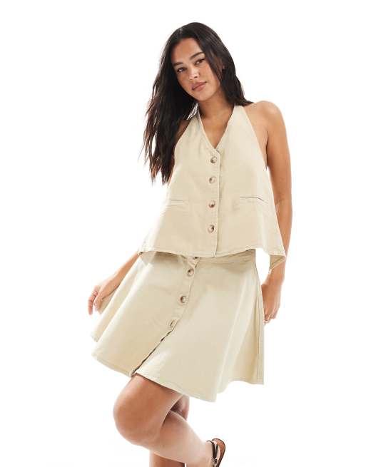 ASOS DESIGN denim frill mini skirt & top set in sand