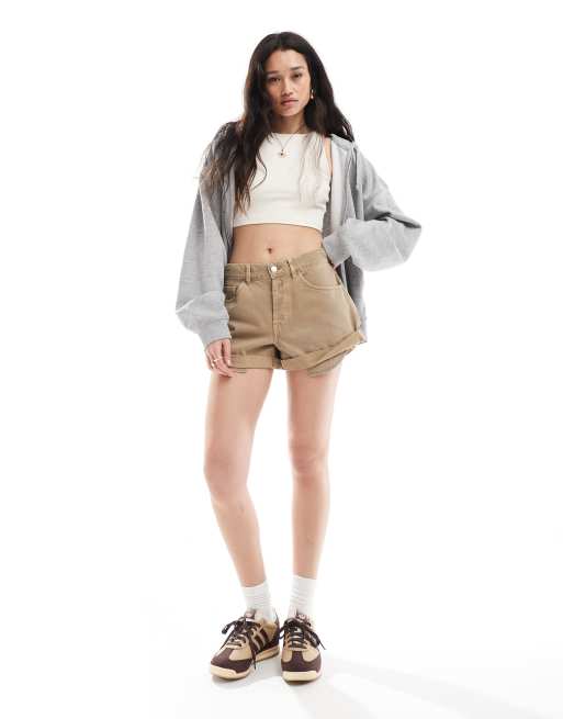 ASOS DESIGN denim relaxed short with roll hem in mocha