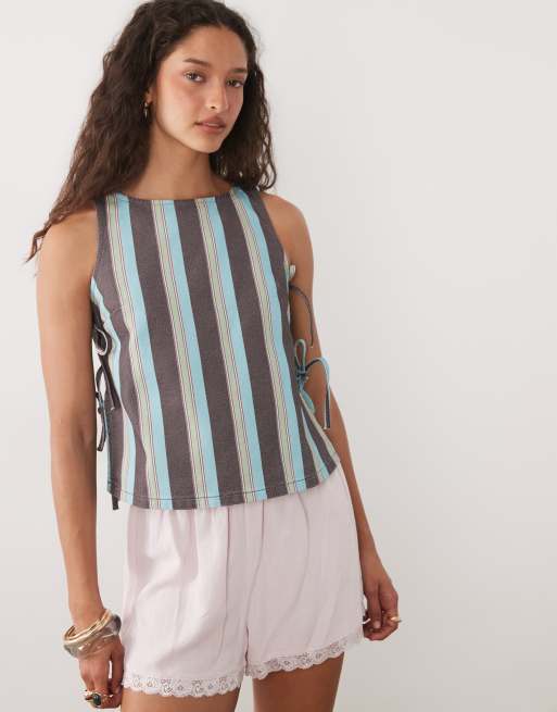 ASOS DESIGN denim tie side tank top in pink and blue stripe