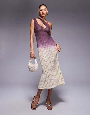 ASOS DESIGN diamante embellished crochet slash shoulder midi dress in pink ombre print