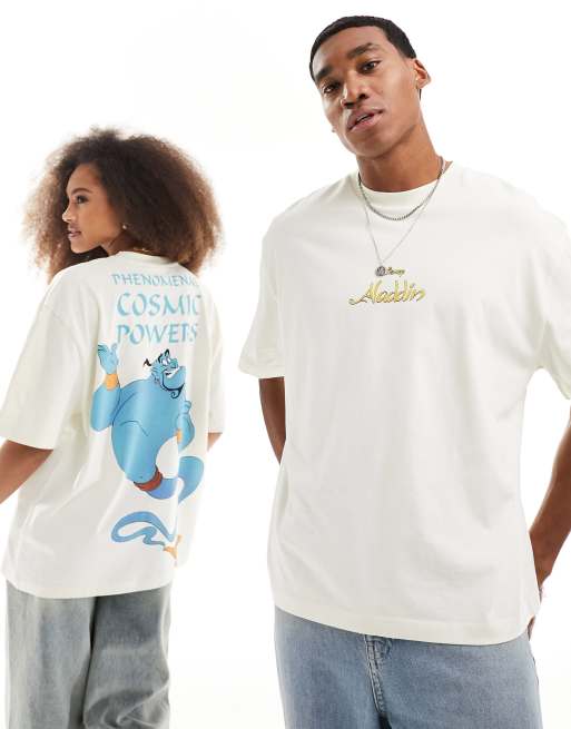ASOS DESIGN Disney oversized unisex tee in beige with Aladdin Genie graphic prints