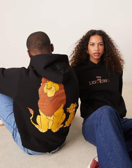 ASOS DESIGN Disney unisex boxy oversized hood with The Lion King Simba prints in black