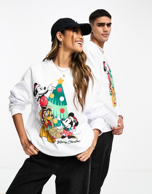 ASOS DESIGN Disney unisex oversized licence sweatshirt with Mickey Mouse Christmas print and embroidery in white