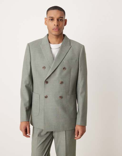 ASOS DESIGN double breasted regular suit jacket in sage green texture