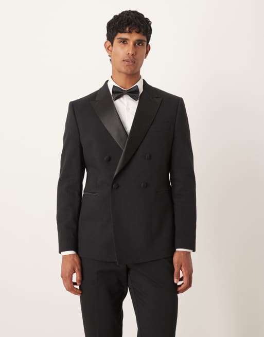 ASOS DESIGN double breasted tuxedo suit jacket in black texture