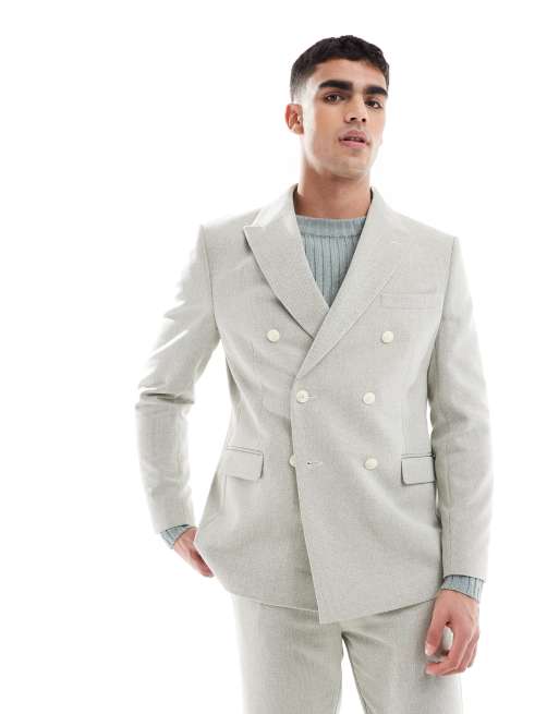 ASOS DESIGN double breasted wool blend regular suit jacket in sage green weave