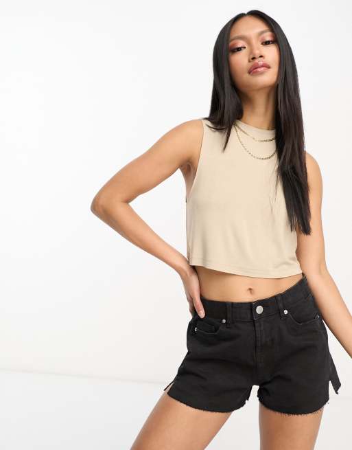 ASOS DESIGN dropped arm hole raw edge singlet in neutral