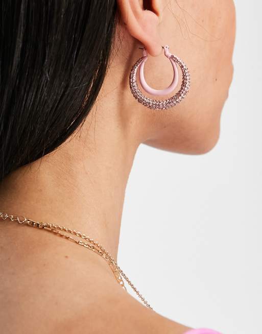 ASOS DESIGN earrings with double hoop design in pink crystal