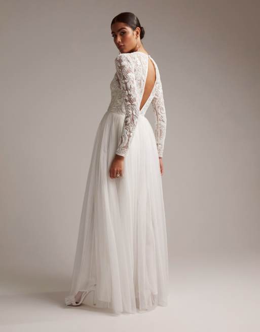 ASOS DESIGN Elizabeth long sleeve wedding dress with beaded bodice in white