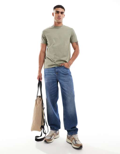 ASOS DESIGN essential crew neck t-shirt with roll sleeve in khaki