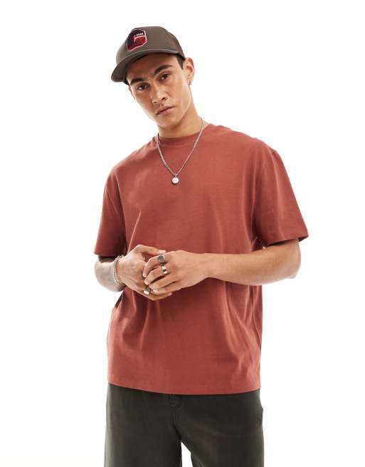 ASOS DESIGN essential heavyweight relaxed t-shirt 240gsm in brown