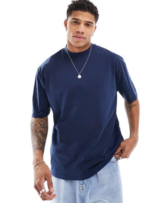 ASOS DESIGN essential oversized high neck t-shirt in navy