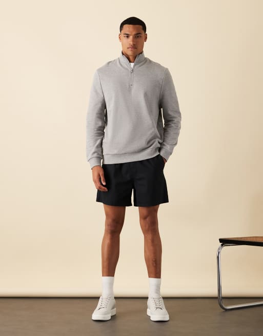 ASOS DESIGN essentials sweatshirt with quarter zip in grey marl