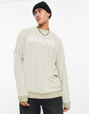 ASOS DESIGN extreme oversized sweatshirt in beige check jacquard with text embroidery