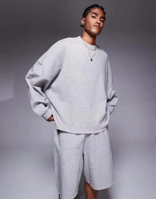 ASOS DESIGN extreme oversized sweatshirt with raw edge in grey marl (Part of a set)