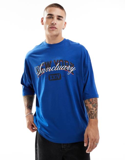 ASOS DESIGN extreme oversized t-shirt with city front print in blue