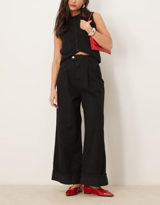 ASOS DESIGN extreme wide leg turn up jeans in black