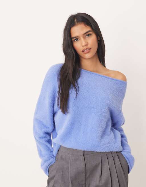 ASOS DESIGN eyelash off shoulder jumper in blue