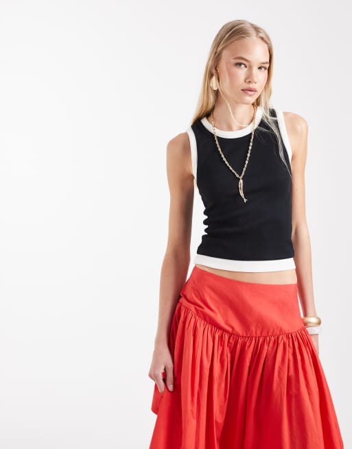 ASOS DESIGN faux double layer ribbed singlet in black & white
