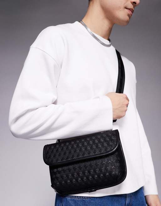 ASOS DESIGN faux leather cross body bag with monogram in black