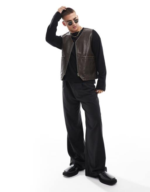 ASOS DESIGN faux leather vest in washed brown