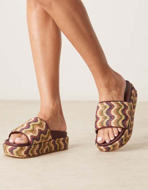ASOS DESIGN Festival flatform footbed mules in multi raffia