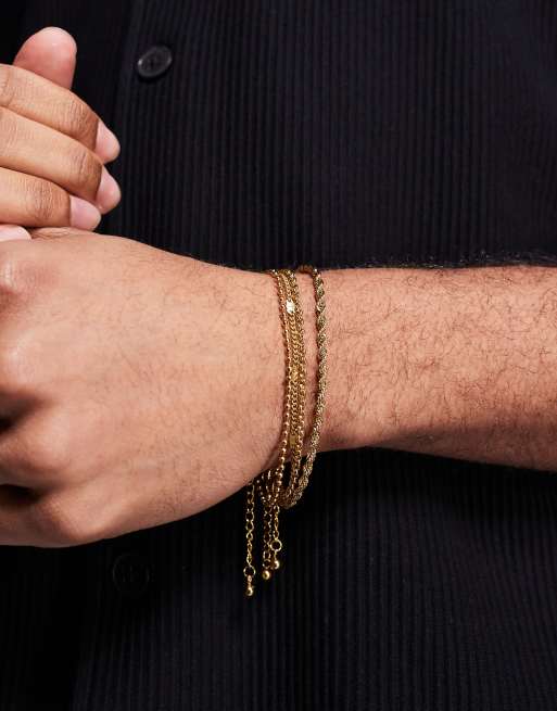 ASOS DESIGN Festival waterproof stainless steel 4 pack of mixed chains bracelet in gold plating