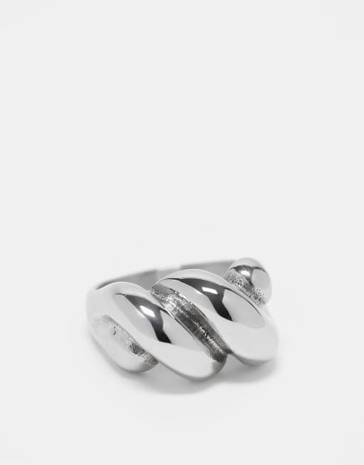 ASOS DESIGN festival waterproof stainless steel ring with twist design in silver tone