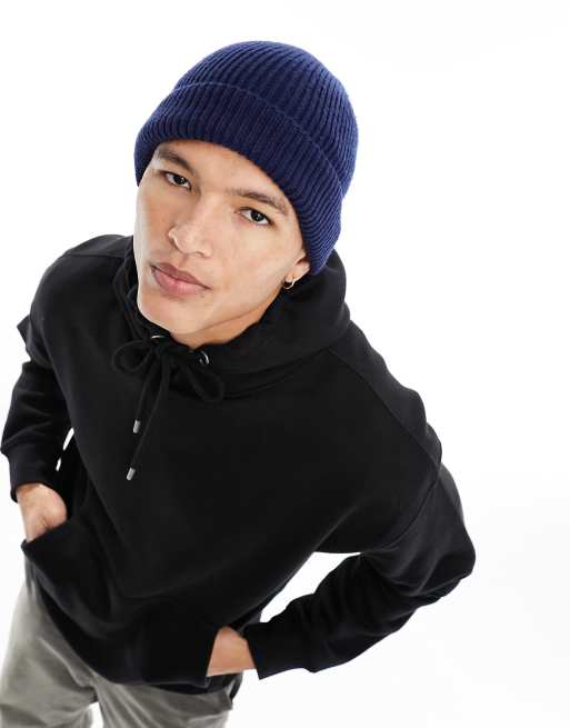 ASOS DESIGN fisherman ribbed beanie in navy