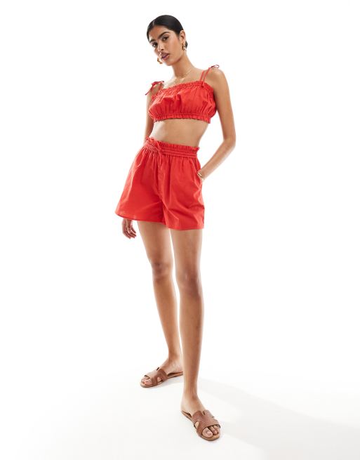 ASOS DESIGN flippy shorts with linen in red (part of a set)